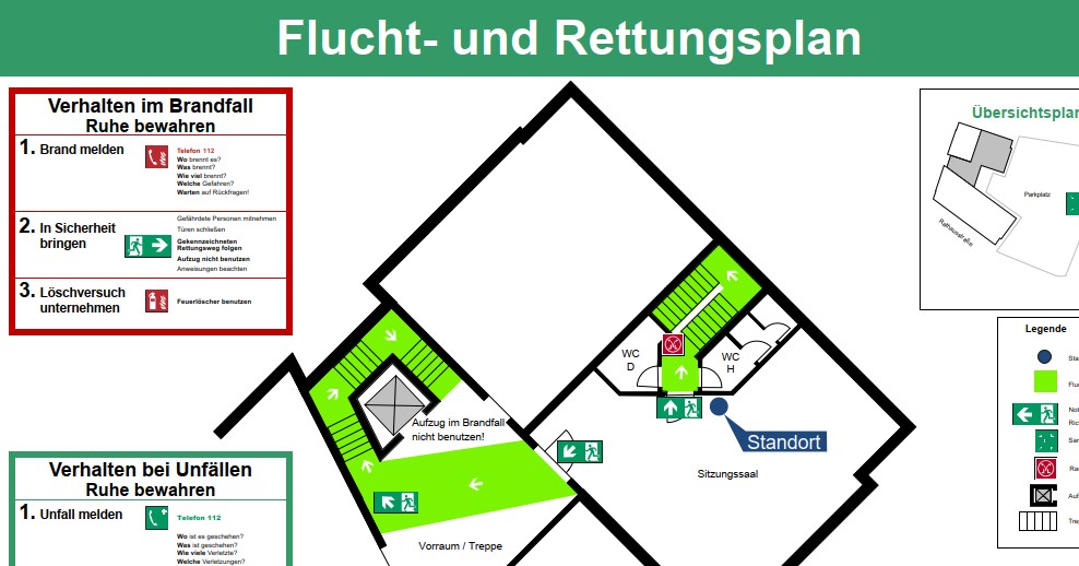 Kleiner Auftrag, Flucht- und Rettungswegeplan für eine Gemeinde.