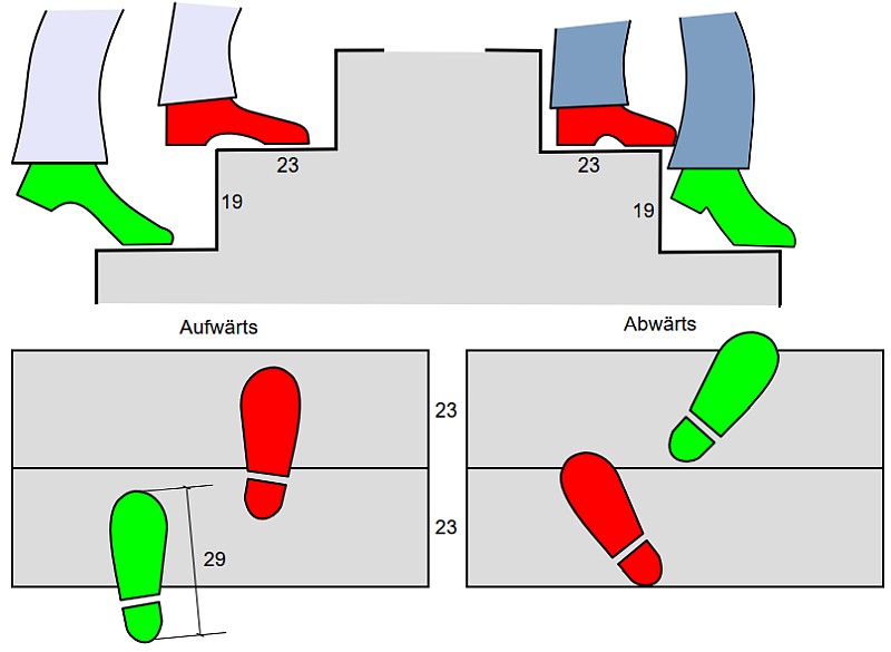 Ein Maß von 17 / 29 also 17 cm hoch und 29 cm Auftrittsbreite sind das Optimum.
