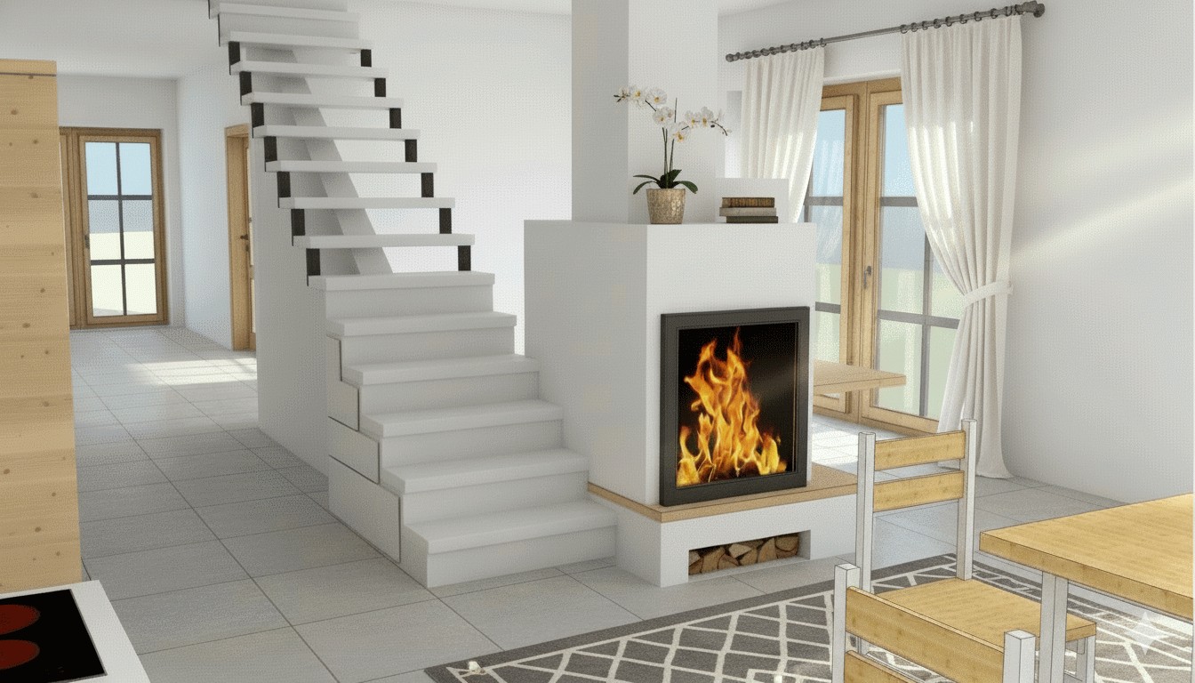 Nach Wärmeschutzberechnung hat man dann eine Wohnfläche von 45m2 allerdings ist der Technikraum ausgelagert, aber eine Wärmepumpe, oder eine Strahlungsheizung wäre noch leicht unterzubringen.